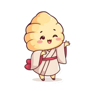 Brighten any room with this funny croissant kimono poster, showcasing a smiling character in a kimono doing a playful twirl. Art that brings smiles and charm.